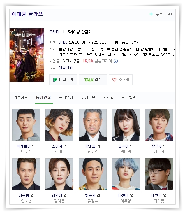 드라마 <이태원 클라쓰>는 통쾌한 재미와 깊은 공감을 선사하며 웹툰 마니아들의 뜨거운 사랑을 받은 동명의 웹툰을 원작으로 한 드라마로 박서준, 김다미, 유재명, 권나라 등 싱크로율 100%의 배우들과 <구르미 그린 달빛>, <연애의 발견> 등을 통해 감각적인 연출력을 인정받은 김성윤 감독, 웹툰 <이태원 클라쓰>의 원작자 조광진 작가가 직접 대본 집필을 맡아 눈부시게 빛나는 뜨거운 청춘들의 이야기를 다이내믹하게 그려내는 드라마로 매주 금요일과 토요일 밤 10시 50분 방송된다.