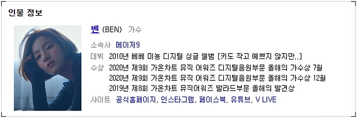 ⊙ 가수 : 벤(BEN)