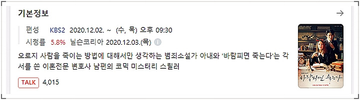 드라마 정보 │ 바람피면 죽는다