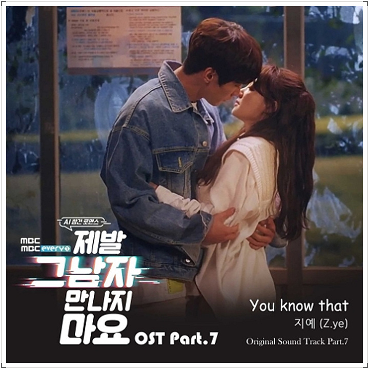 사랑은 하고 싶지만 오답은 피하고 싶은 주인공이 '조상신'이라는 AI 냉장고를 만들어 내며 펼쳐지는 로맨틱 코미디 드라마 ‘제발 그 남자 만나지 마요’의 일곱 번째 OST 'You know that'이 '지예(Z.ye)'의 목소리로 발매되었다.
