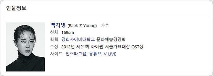 ⊙ 가수 : 백지영